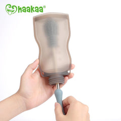 • Las bolsas de silicona para almacenar leche materna Haakaa son seguras de usar tanto en el refrigerador como en el congelador y pueden ser almacenadas tanto horizontal como verticalmente ya que cuentan con un tapón que las sella herméticamente.