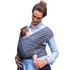 ¿Quieres portear con estilo? Es fular Dark Crosses es perfecto para portear durante todo el año por su color y textura Es un fular muy, ¡muy suave!; es tan agradable que prácticamente la sensación es de tener a tu bebé piel con piel.